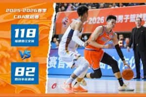 2025-2026赛季CBA联赛常规赛第十九轮展开较量,福建晋江文旅男篮坐镇主场迎战四川丰谷酒业男篮,凭借全场攻防两端的压制表现,主队以118-82大胜对手,完成本赛季对四川男篮的双杀。本场比赛主队福晋江文旅男篮全员发力,12人全部有得分进账,攻防两端的全面发挥让主队一路掌控比赛节奏,最终收获一场酣畅淋漓的胜利。四节比分分别是:28-27,29-14,30-21,31-20(福建晋江文旅男篮在前)。