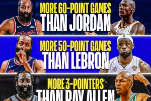 60+得分场次比乔丹多;