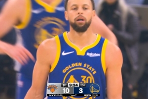 GIF-库里左手背传直接失误回场