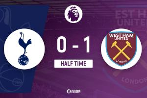 半场-热刺暂0-1西汉姆联 萨默维尔单挑防线破门本戴维斯伤退