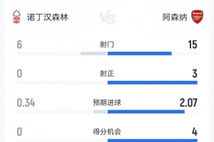 体育资讯1月18日讯 本轮英超,阿森纳0-0客平诺丁汉森林。双方全场重点数据对比如下↓(主队森林在前)